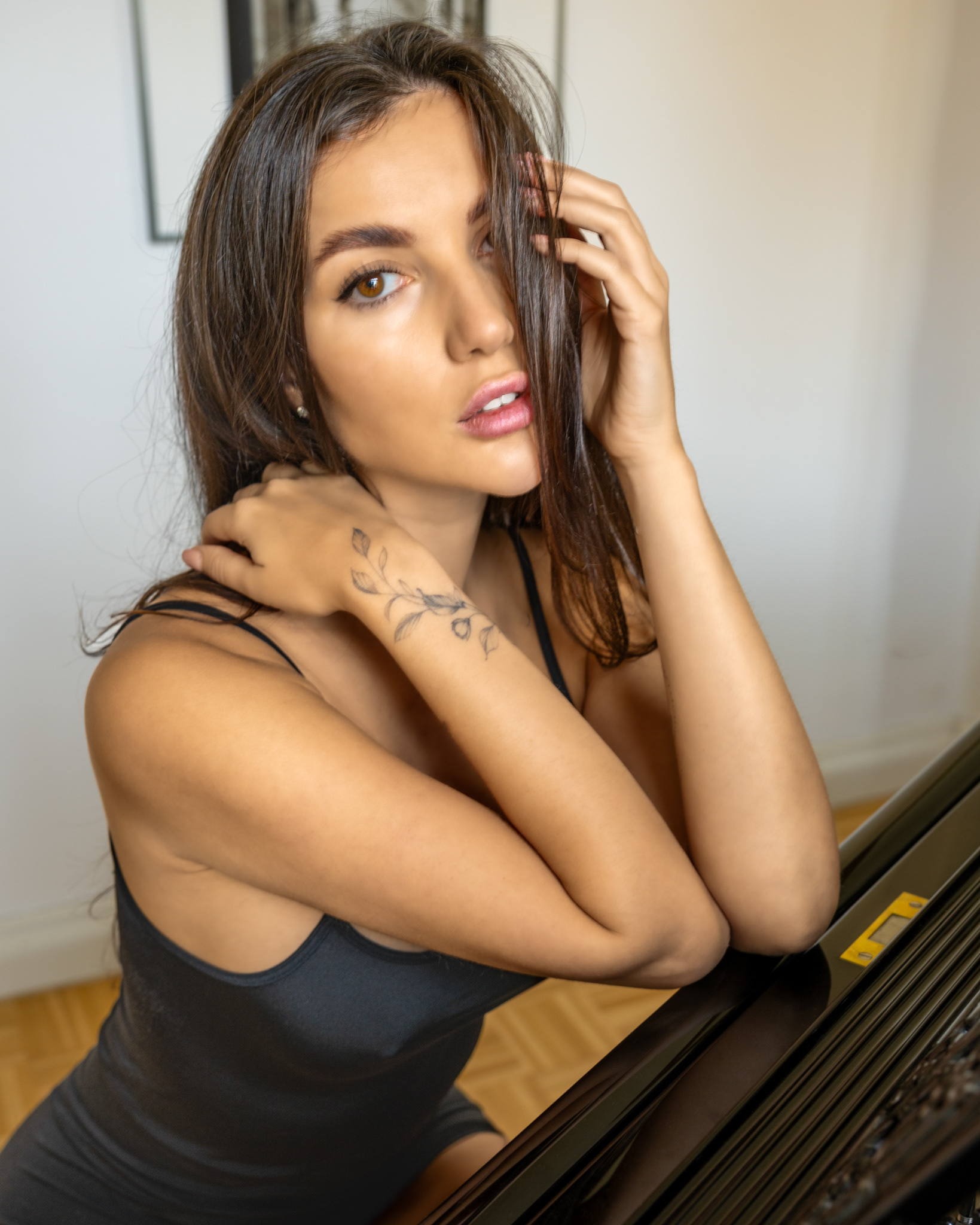 Setcard details: Age: 31 | Height: 1.75m | Weight: 49 kg | Measurements: 86-60-90 | Bra size: 75B | Dress size: 36S | Shoe size: 38 | Hair: brown, long | Eyes: brown | Tattoos: few Piercings: none